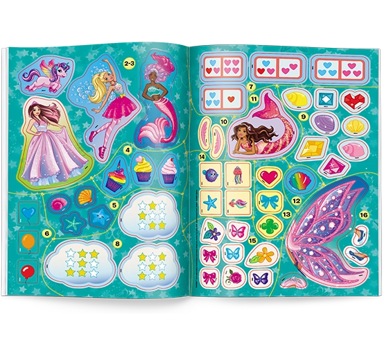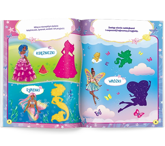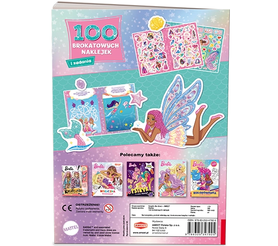 Witaj w kolorowym świecie Barbie™. Syrenki, księżniczki, wróżki i ich przyjaciele zawsze są gotowi na fantastyczne wyzwania i przygody. A ty? Każda strona to nowe zadanie lub łamigłówka do rozwiązania. W ich wykonaniu pomogą brokatowe naklejki dołączone do książki. A jest w czym wybierać – sto naklejek zapowiada naprawdę świetną zabawę!