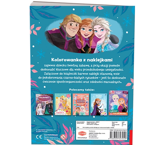 Pora na wspaniałą przygodę z Anną, Elsą i ich przyjaciółmi z Arendelle. Kolorowanka z Naklejkami zapewni dziecku świetną zabawę, a przy okazji pomoże doskonalić kluczowe dla wieku przedszkolnego umiejętności. Załączone do książeczki barwne naklejki stanowią wzór do pokolorowania czarno-białych rysunków – jest to doskonałe ćwiczenie spostrzegawczości oraz zdolności manualnych.