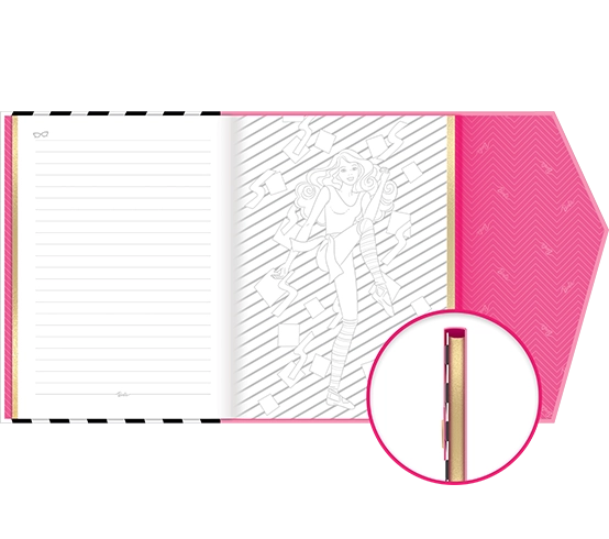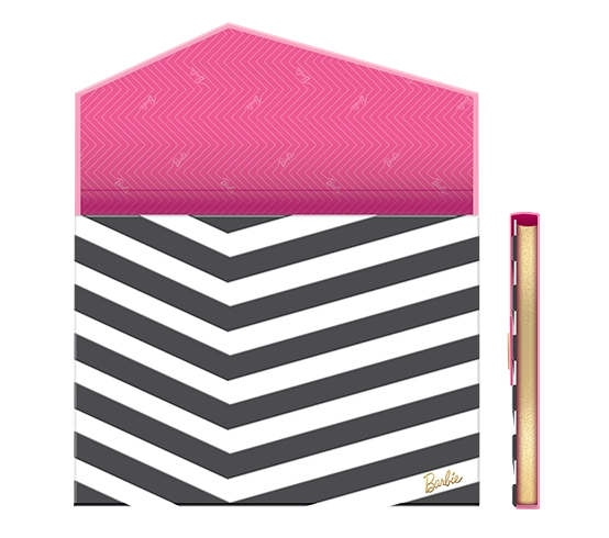 Prawdziwa gratka dla fanek Barbie w każdym wieku! Ten elegancki notes w kształcie torebki charakteryzuje się unikalnym wzornictwem, a tłoczenia, złota folia i barwione brzegi dodają mu niezwykłego uroku.