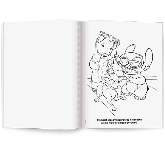 Przeżyj wraz z Lilo i Stitchem wspaniałą barwną przygodę. Zmocz pędzelek czystą wodą, użyj dołączonej do książki paletki z farbami i dorzuć szczyptę fantazji – to wystarczy, by zmienić czarno-białe strony w obrazy pełne kolorów! Gotowe dzieła można łatwo wyjąć z książki i ozdobić nimi pokój lub podarować komuś bliskiemu.